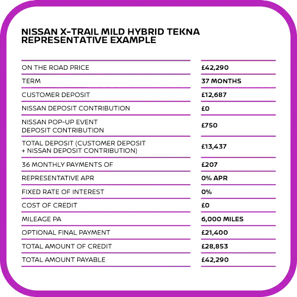Get event-only offers with an extra £750 Deposit Contribution. 0% APR Representative on selected Nissan models*.