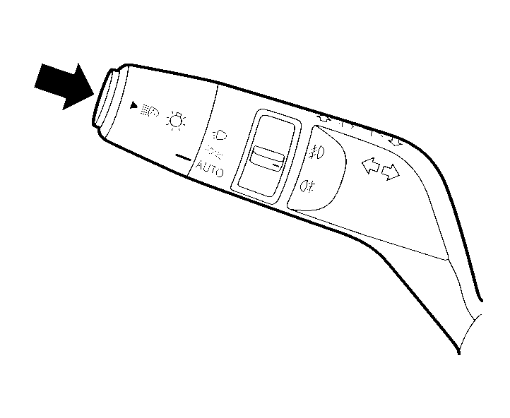 To activate the adaptive LED headlight system, push the switch as illustrated with the headlight switch in the “AUTO” position. The adaptive LED headlight indicator light in the meter will illuminate while the headlights are turned on.