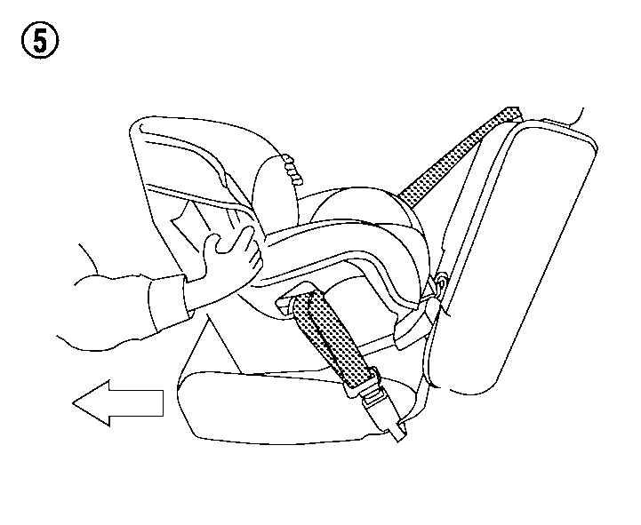 Test the child restraint before you place the child in it (5). Push the child restraint from side to side and tug it forward to make sure that it is held securely in place.