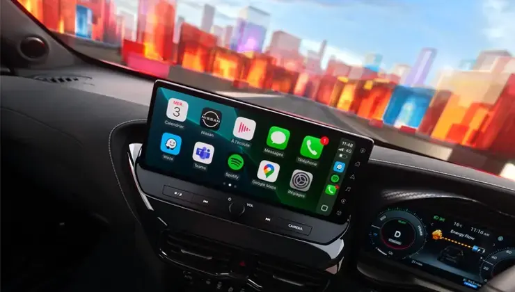 [6] 8” NissanConnect Display with Connected Services standard on Acenta grade and above. Connecting a mobile phone to NissanConnect with Apple CarPlay® and Android Auto® should only be done when the car is parked safely. Use of the system should always be in accordance with the Highway Code. Users should be aware of the potential for hands-free technology to distract attention from the road which could impact on having full control of the vehicle. For compatible devices, visit https://www.nissan.co.uk/ownership/nissan-infotainment-system/android-auto-apple-carplay.html. To use NissanConnect Services you need a smartphone with compatible iOS or Android operating system, and a SIM card with a data option from a mobile service provider. Download the free NissanConnect Services app and create an account. Connect your smartphone with your vehicle equipped with NissanConnect Services by logging in using your username and password. All services are subject to mobile network coverage. NissanConnect Services available for an additional charge on subscription after the 3rd year. For further information, visit Nissan.co.uk.